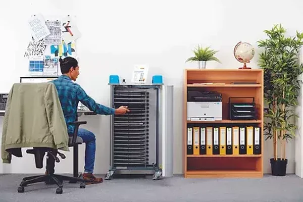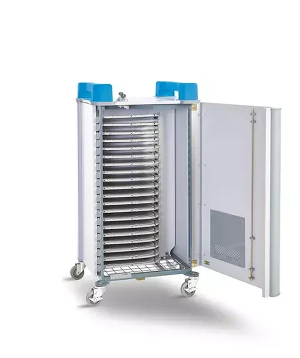 - Horizontale opslag: Apparaten worden veilig opgeborgen op afzonderlijke ABS-planken, die bescherming bieden tegen krassen, slijtage en schade.